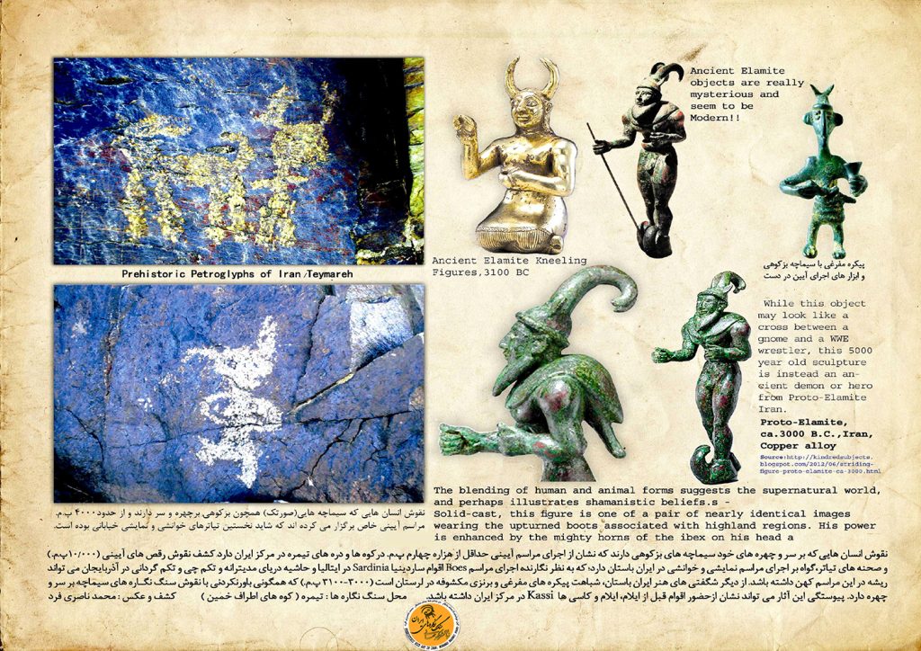 بررسی های نگارنده، گویای آن است؛ که آن باورهای آیینی حداقل از هزاره ی نهم پیش از میلاد در میان سنگ نگاره های تیمره و هزاره ی سوم پ.م. پیکره های مفرغی و زرین مکشوفه دوره ایلامی و پیش ایلامی سندهای محکم برآن باورهای کهن هستند؛ که در دسترس پژوهشگران قرار دارند .