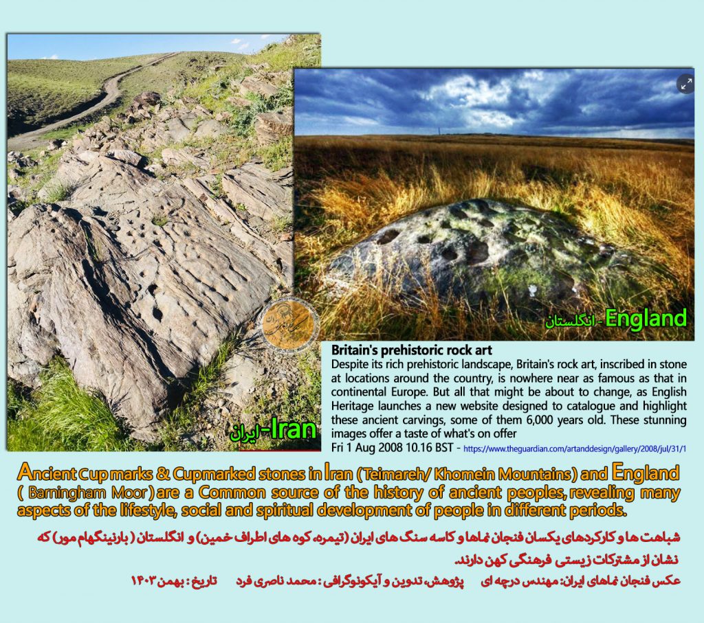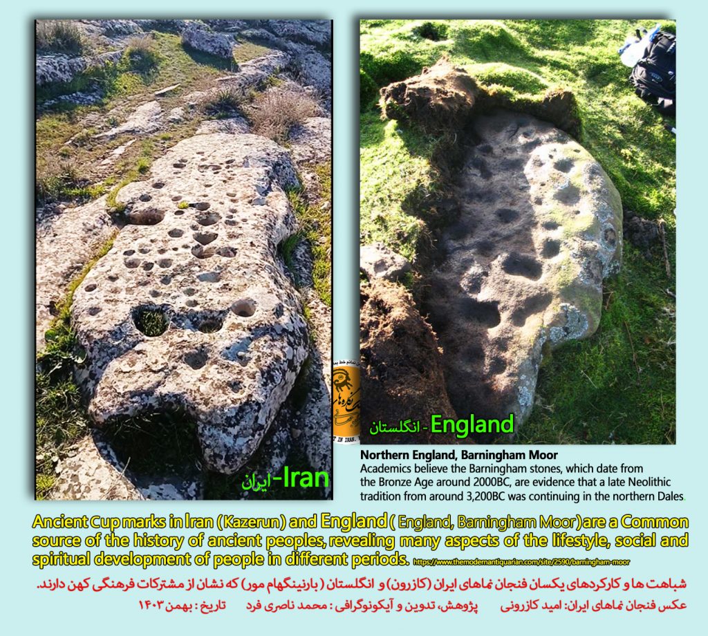 تطبیق فنجان نماها و کاسه سنگ های ایران و دیگر نقاط جهان از آن مصداق ها است ؛ که ما در اینجا چند نمونه از فنجان نماها و کاسه سنگ های ایران و انگلستان را برای نخستین بار خدمت شما معرفی می کنیم.
