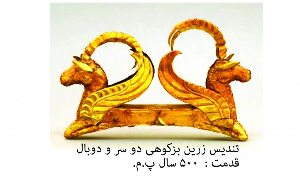 آن دانشمند بزرگ ایرانی، به زیبایی نمادها و اسطوره های کهن این سرزمین را می شناخته و آن فرشته ناجی ایرانیان باستان (بزکوهی) را در قالب نمادی ریشه دار، پر از پیام و تاکید بر خواسته و آرزوها خلق کرده است؛ به ما خیلی فراوانی نعمت بده و از ما خیلی محافظت کن (بزکوهی دو سر، نوعی دعا).