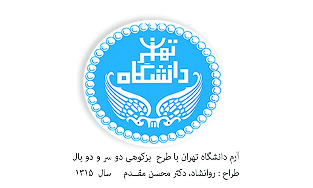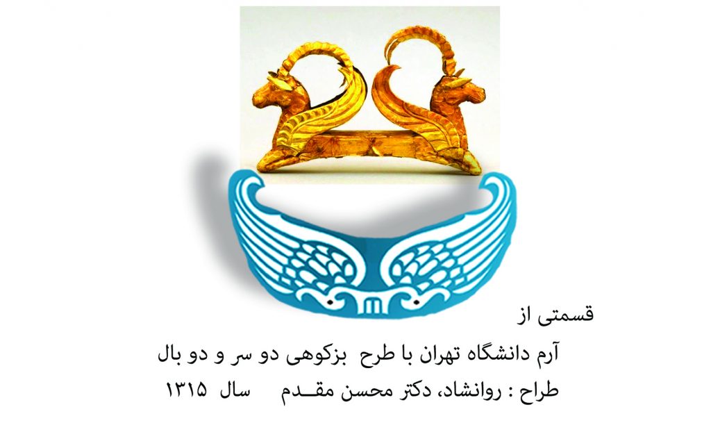 آرم زیبای دانشگاه تهران، که برگرفته از هنر اعجاز گونه ی گچ بُری های دورره ساسانی در تیسفون است؛ روان شاد، دکتر محسن مقدم با دگرباز آفرینی آن، شاهکاری در حد آن هنر کهن آفریده است(سال 1315).