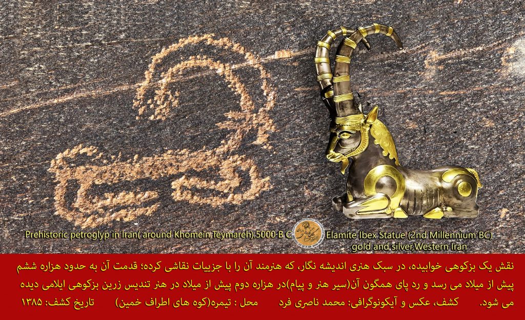 نقش بزکوهی نماد ایرانیان باستان، بویژه ایلام کهن که سیر پیامی آن از نقاشی های کهن تا پیکره های زرین شگفت انگیز ایلام دیده می شود.